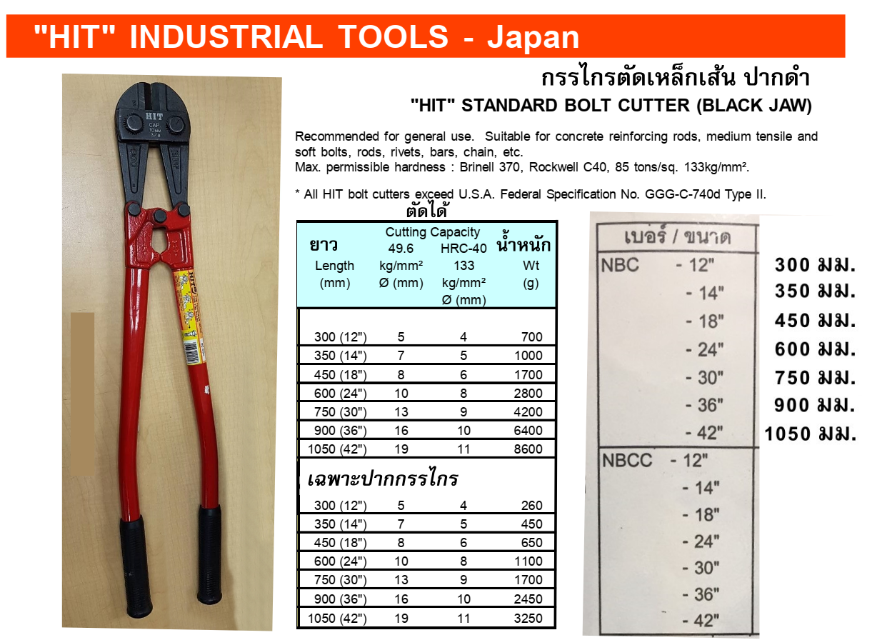 HIT ฮิต รุ่น NBC กรรไกรตัดเหล็กเส้น ปากดำ ญี่ปุ่น STEEL BOLT CUTTER