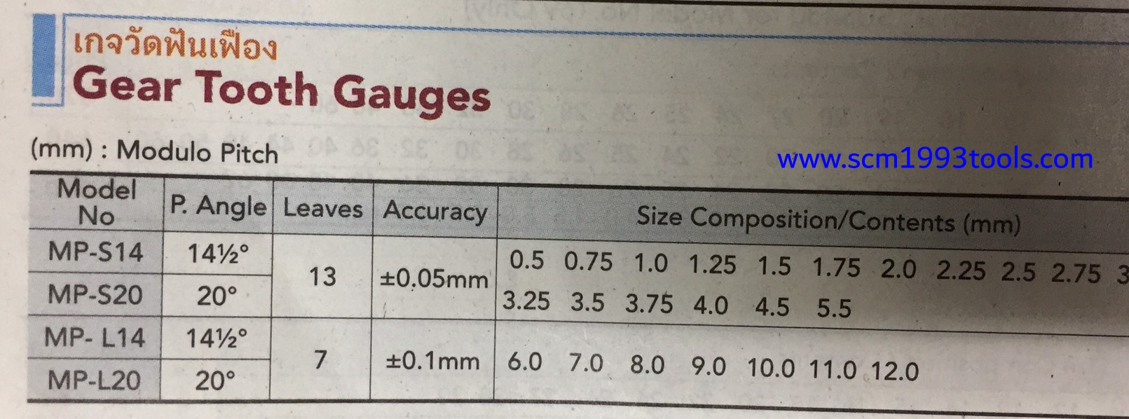 เกจวัดฟันเฟือง ญี่ปุ่น GEAR TOOTH GAUGE ตรา FUJI TOOL มิลลิเมตร