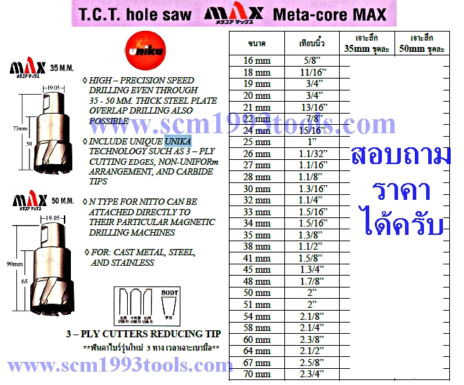 หมวดหมู่ | โฮลซอเจาะเหล็ก โฮลซอเจาะสแตนเลส โฮลซอเจาะคอนกรีต โฮลซอเจาะกระเบื้อง |