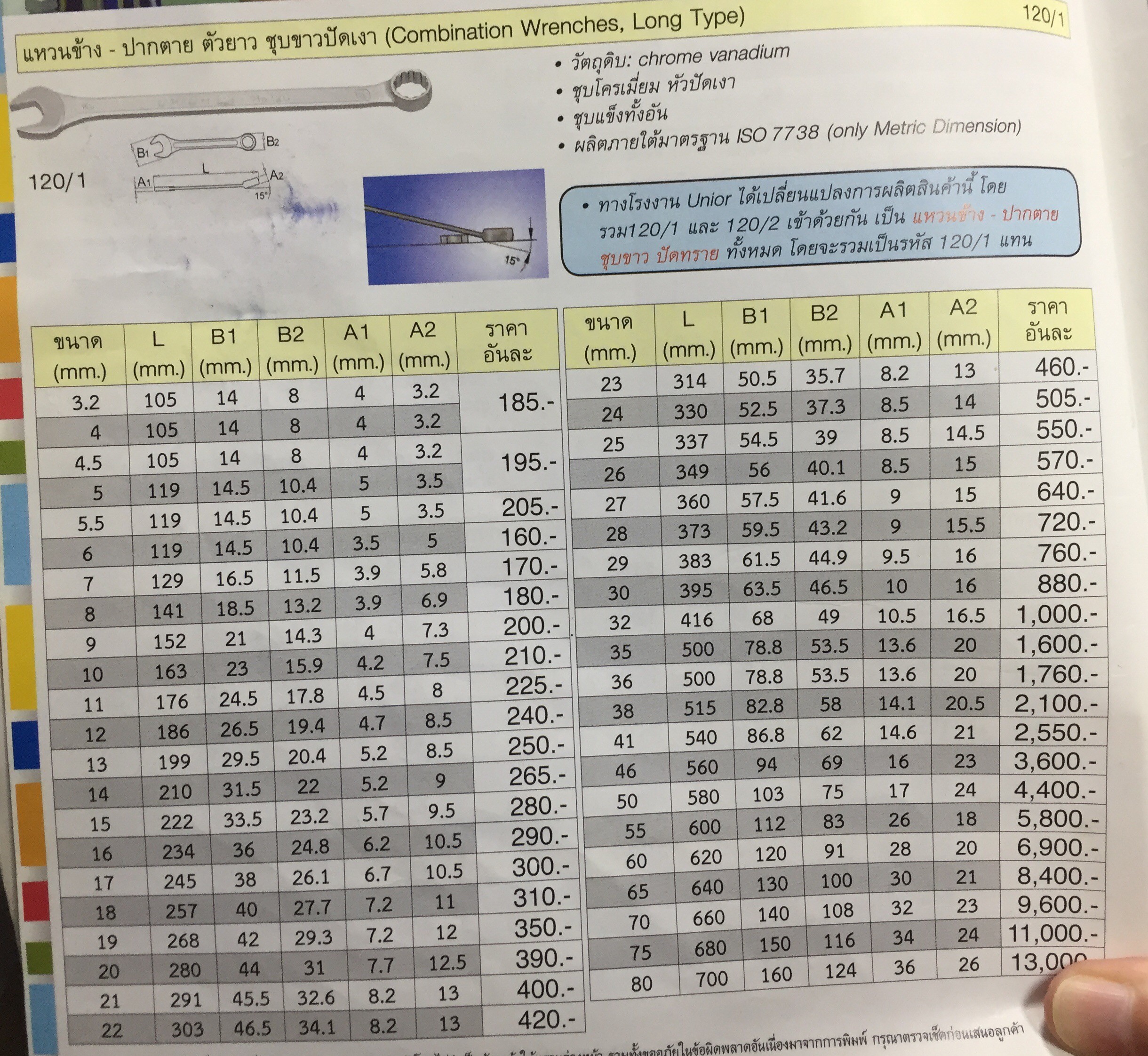 UNIOR รุ่น 120 /1 ประแจแหวนข้าง ปากตาย ตัวยาว ชุบขาวปัดเงา Combination Wrench