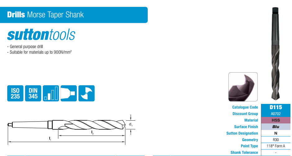 SUTTON ซัตตัน ดอกสว่านเจาะเหล็กไฮสปีด ก้านเตเปอร์