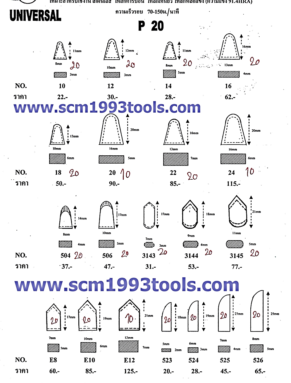 UNIVERSAL ยูนิเวอแซล มีดเล็บ เกรด P20 Tungsten Carbide Tips | ||||